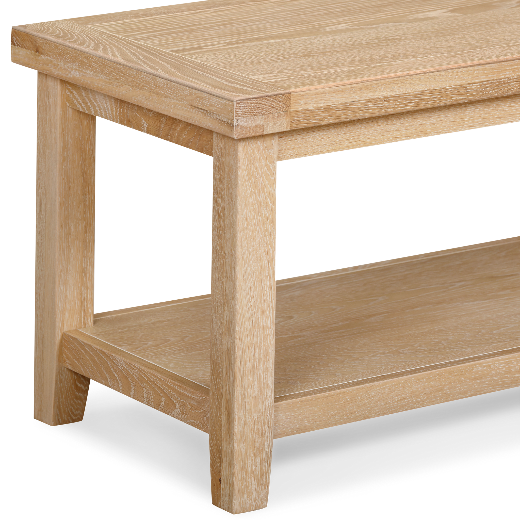Modern design meets traditional craftsmanship in our beautiful Bath Whitewash Oak coffee table. The clean lines and simple form give it a contemporary edge while the solid oak construction and classic mortise and tenon joints ensure lasting strength and durability. The lower shelf offers handy extra space for books, magazines or decorative pieces.