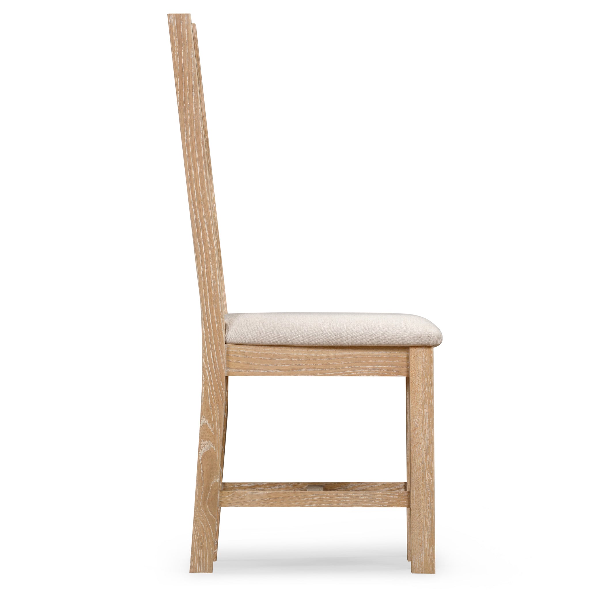 Blending comfort and timeless design, our Bath Whitewash Oak ladder back chair is the perfect finishing touch for your dining space. Crafted from solid oak, its strong frame and gently curved ladder back provide sturdy support, while the padded seat offers comfort for long, relaxed meals with family and friends.