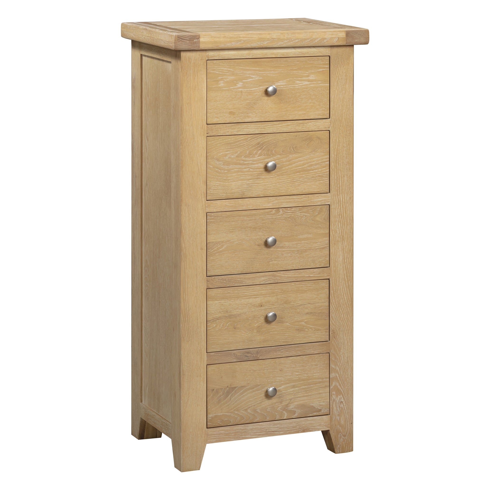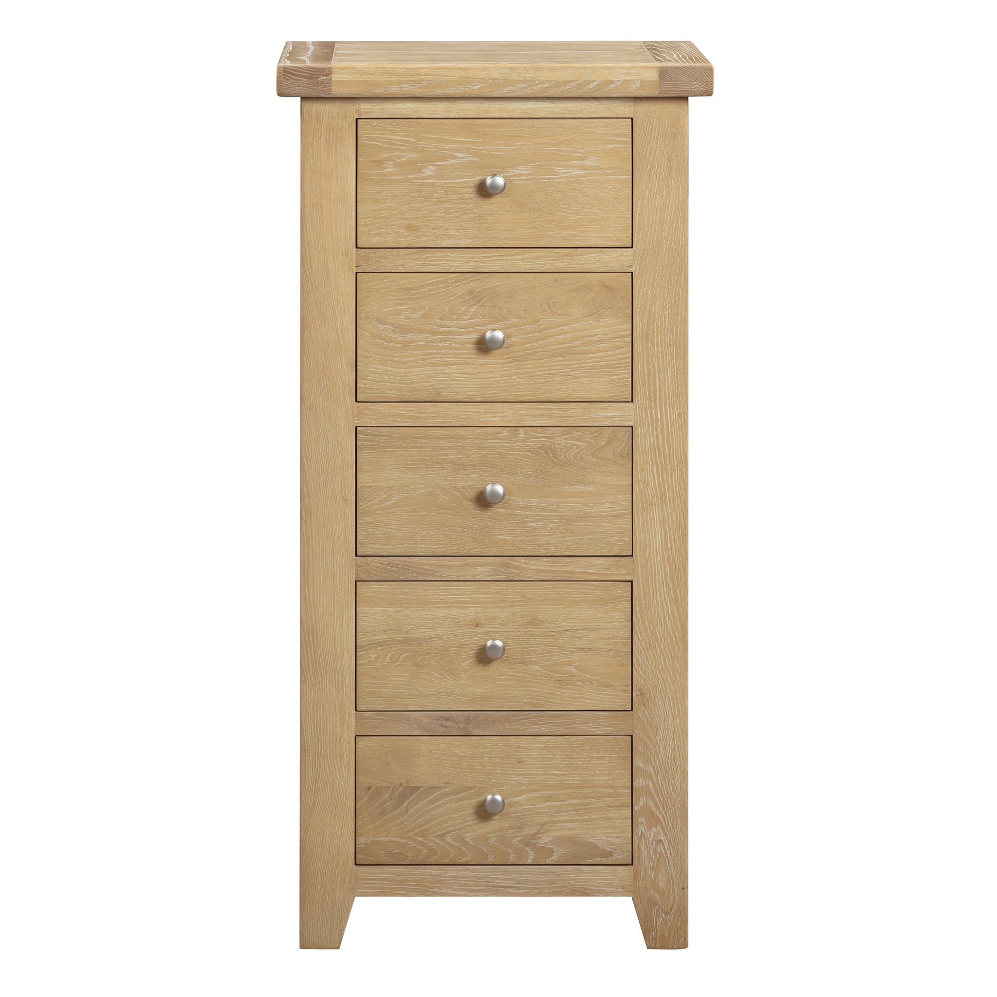 Bath Whitewash Oak Tall 5 Drawer Chest