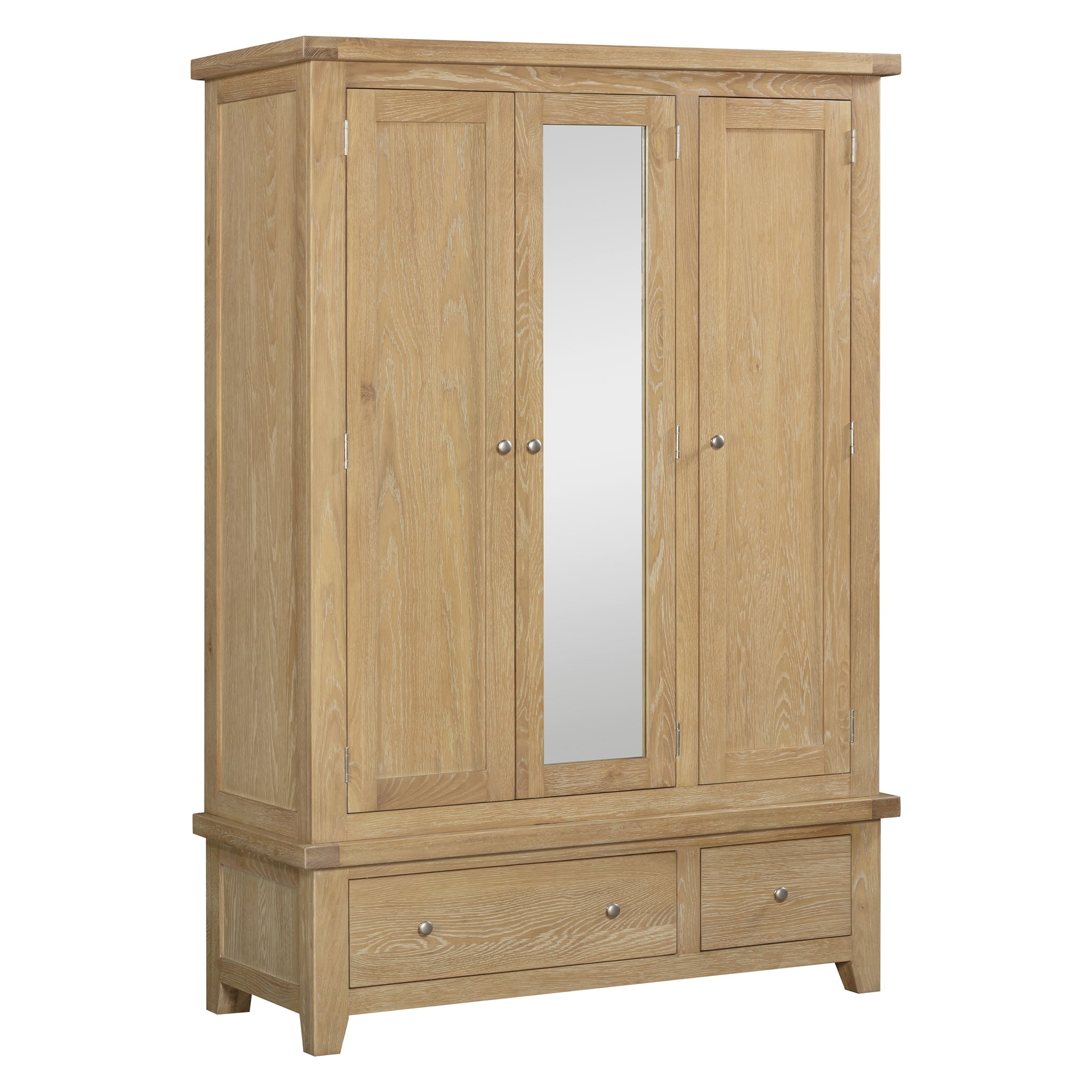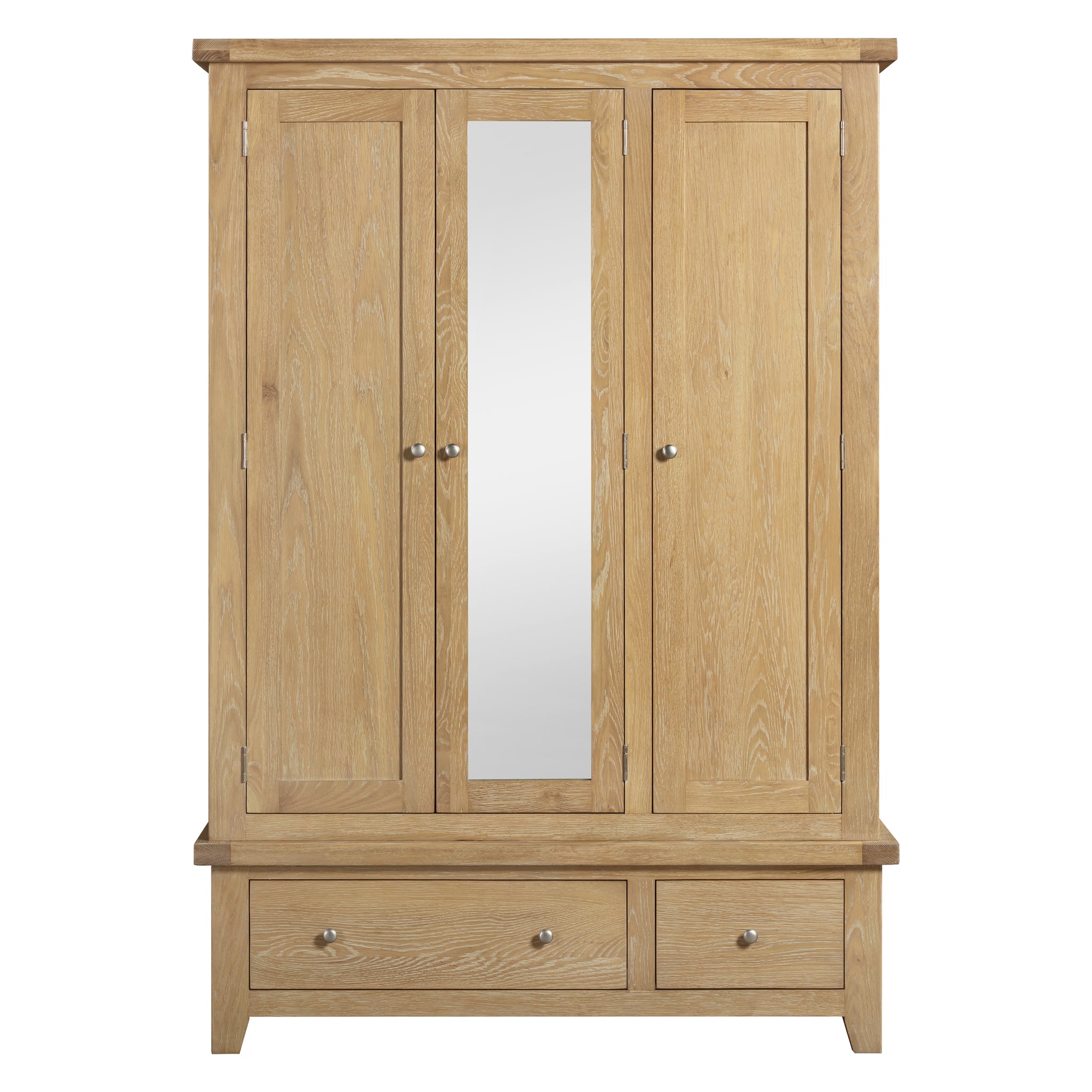 For when you need a little additional storage this freestanding triple wardrobe provides exactly that plus a little more. Inside you will find a full length rail offering generous hanging space for longer garments while two spacious drawers below are perfect for knits shoes or seasonal accessories. A handy full length mirror on the centre door makes getting ready effortless and adds a bright airy touch to your bedroom.