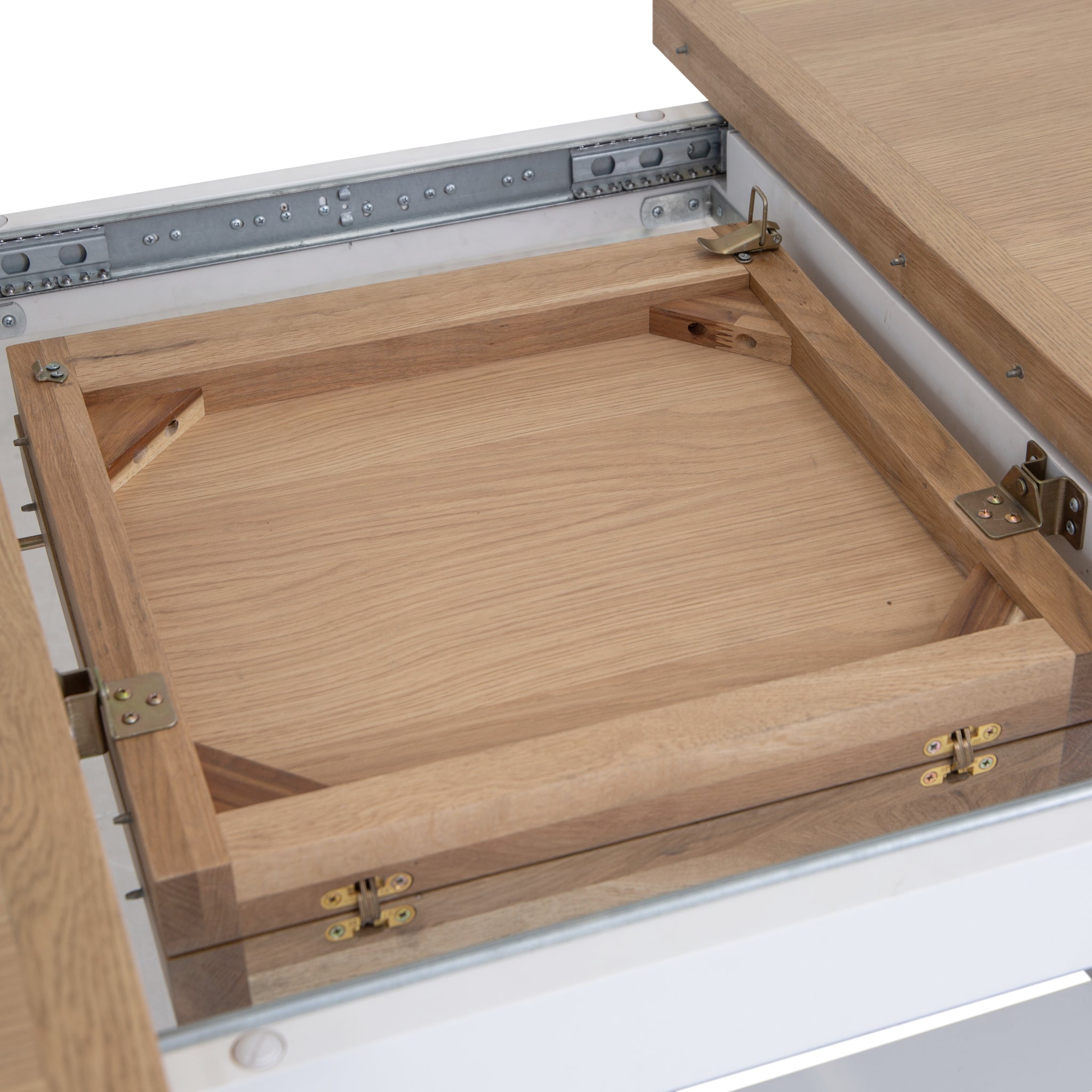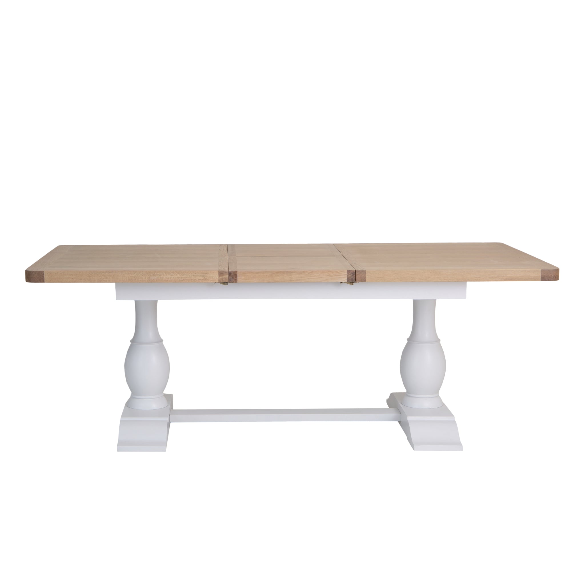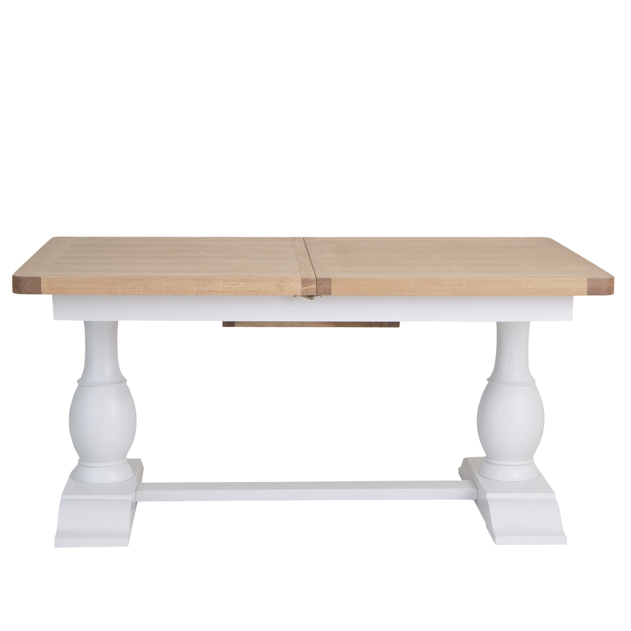 The soft white painted base and smooth oak top give it an understated elegance, while the clever extension mechanism glides open effortlessly, creating space for everyone to gather round. Extending from 1.6 to 2.1 metres, it is perfect for everything from Sunday lunches to quiet weekday dinners.