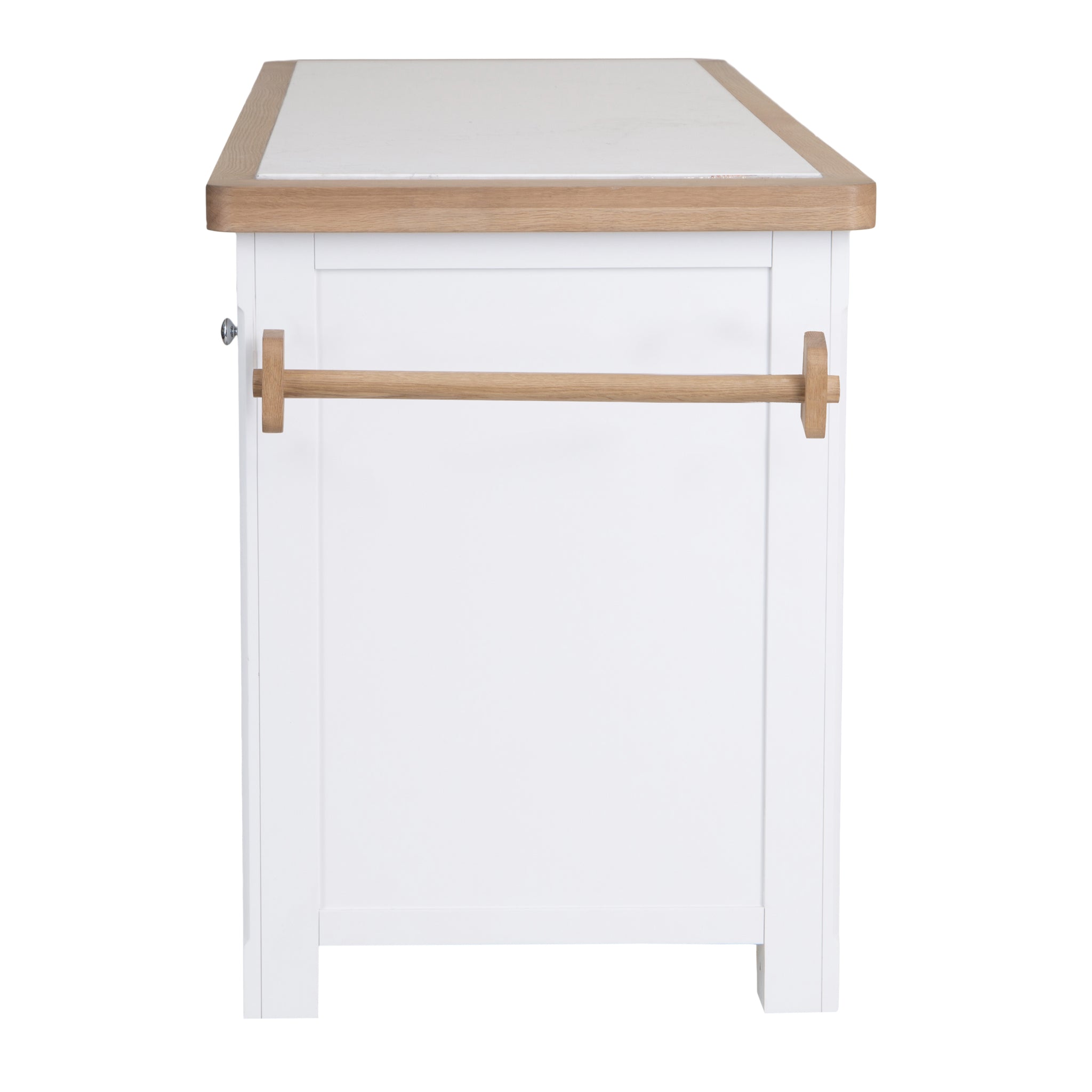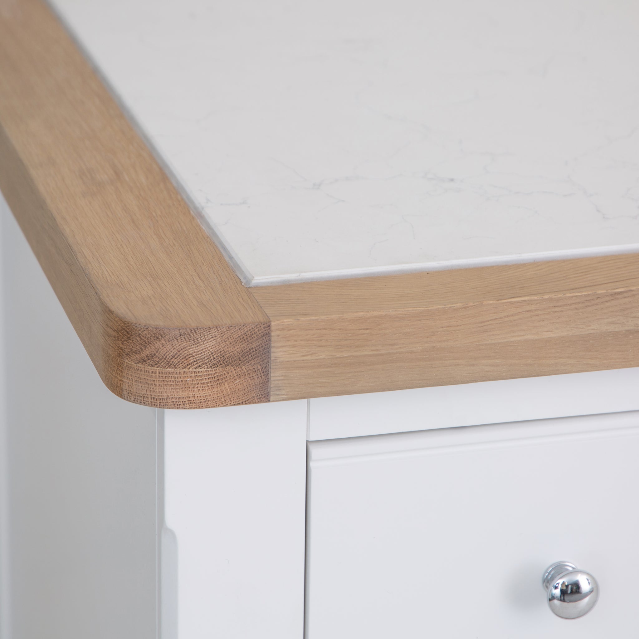 Crafted from high quality oak and oak veneers, this island combines durability with style. The mix of natural wood tones, cool marble and smooth painted surfaces creates a warm, welcoming look that will suit any neutral or country kitchen setting.
