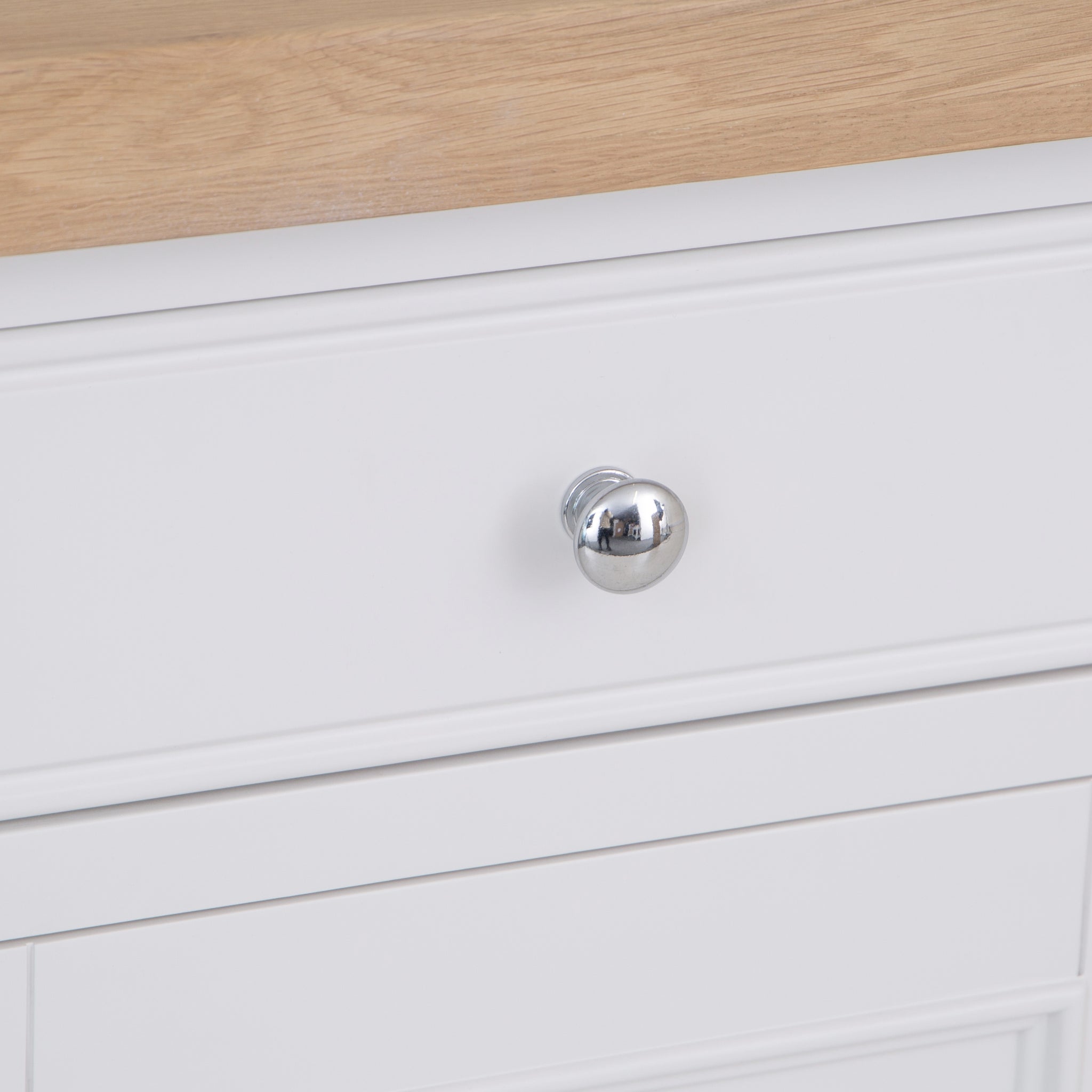 Timeless, practical and beautifully crafted, the Clover Painted Sideboard adds calm elegance and modern country charm to any space. The soft white painted finish is complemented by a contrasting natural oak top, creating a look that feels fresh, versatile and full of character.
