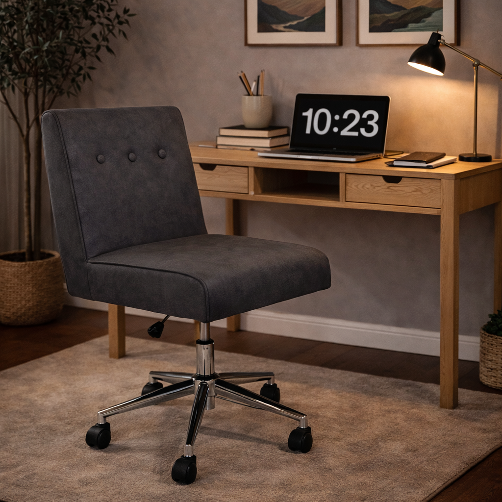 Transitional Chic: This office chair seamlessly blends modern and traditional styles, adorned with refined piped trims for an elegant and vintage touch.