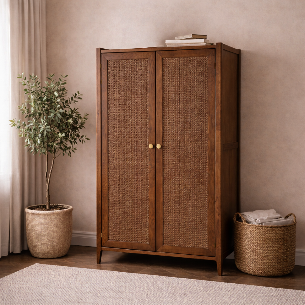 Lombok Walnut Rattan Full Hanging Wardrobe